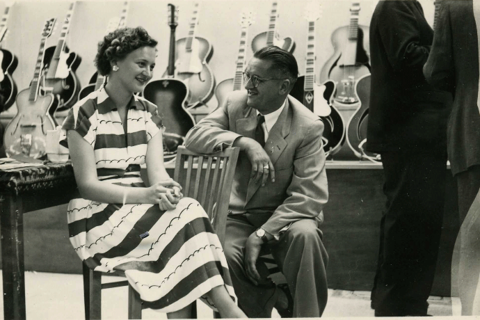 The 1950s saw the company rebuild its reputation and begin again to export across the world. Links were made with distributors in all major countries who kept Hofner’s order books full. As musical tastes began to change in the 50s the production of guitars increased and so did the model range. Many of the models that became synonymous with the Höfner brand were conceived at this time; the President, The Committee and the Violin Bass to name just three. Sales were good and steady, but nobody was expecting what happened next – Rock n Roll. Suddenly the demand for guitars increased to such an extent that Höfner had to further extend the factory at Bubenreuth and bring guitar production levels up to a point where they accounted for more than 50% of overall turnover, something nobody would ever have predicted.